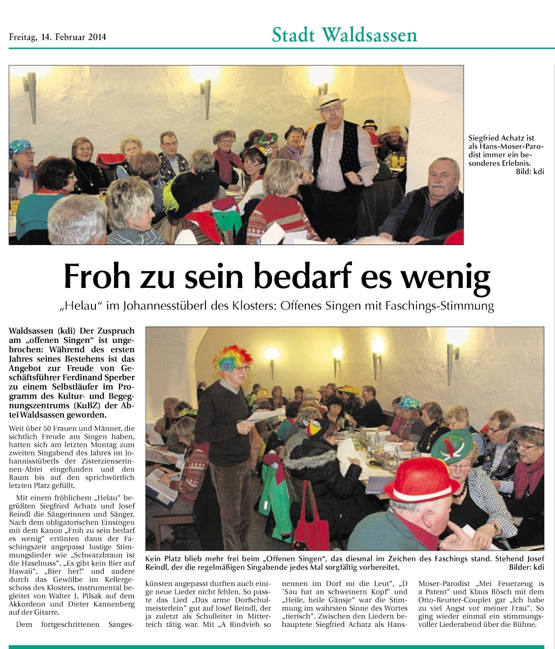 Bericht Der neue Tag zu offenes Singen im Fasching 2014