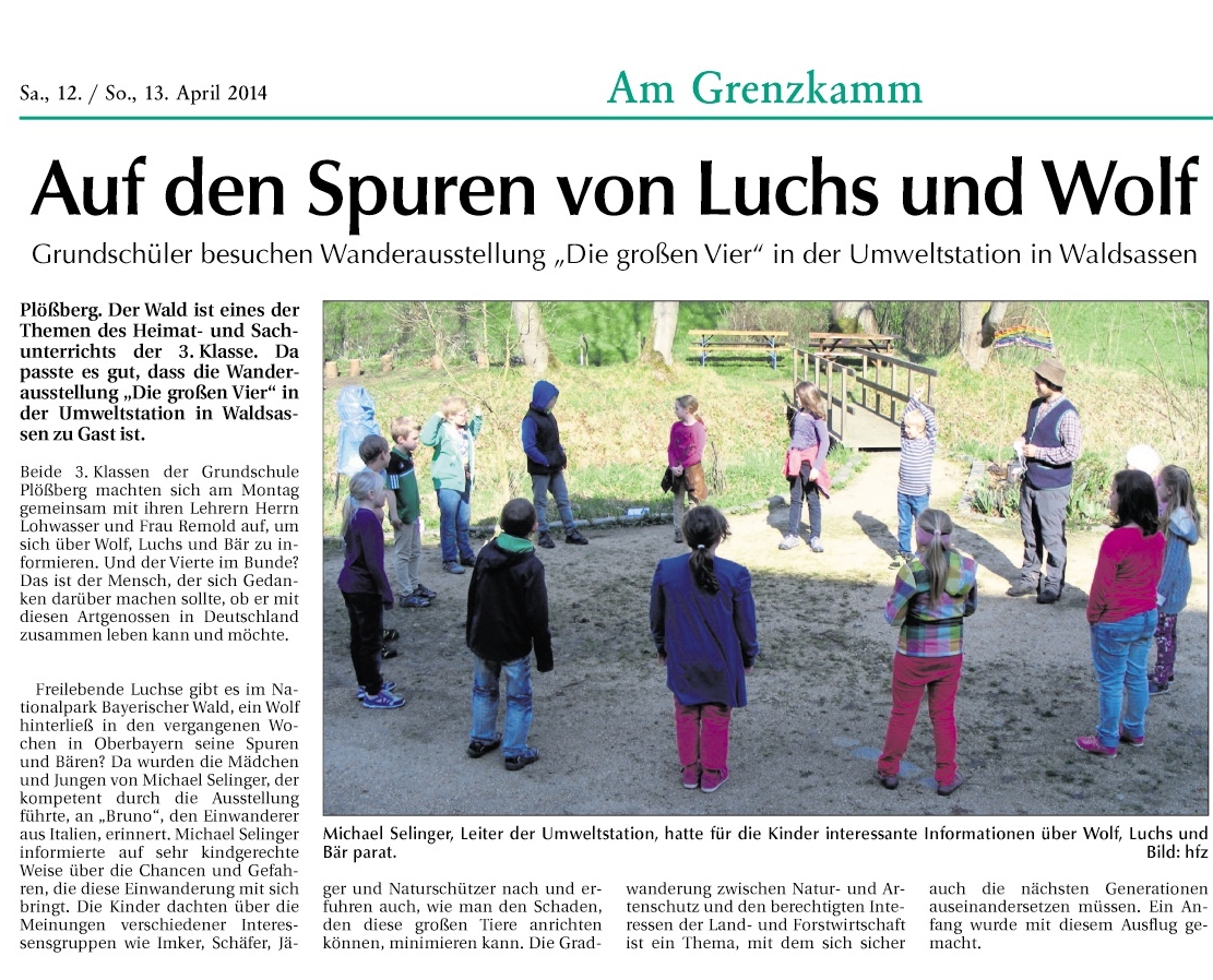 Mit der wunderbaren interaktiven Wanderausstellung „Die Großen Vier“ kommen Bär, Wolf und Luchs in den Naturerlebnisgarten nach Waldsassen. Informativ und spielerisch erfahren Sie alles Wichtige über diese faszinierenden Wildtiere und deren Lebensräume. Besuchen Sie diese einmalige Wanderausstellung! Genießen kann man die Ausstellung, zu den genannten Öffnungszeiten oder gegen Anmeldung bei einer spannenden Führung!