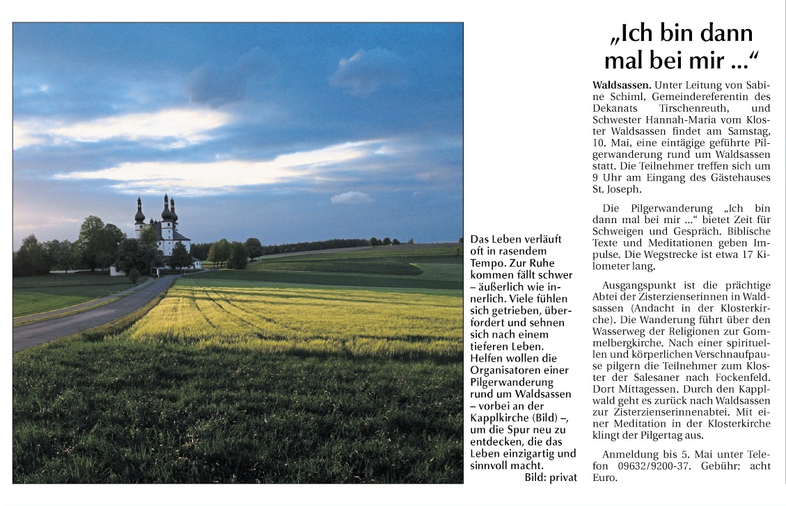 Eintägig geführte Pilgerwanderung rund um Waldsassen in Zusammenarbeit mit dem Dekanat Tirschenreuth