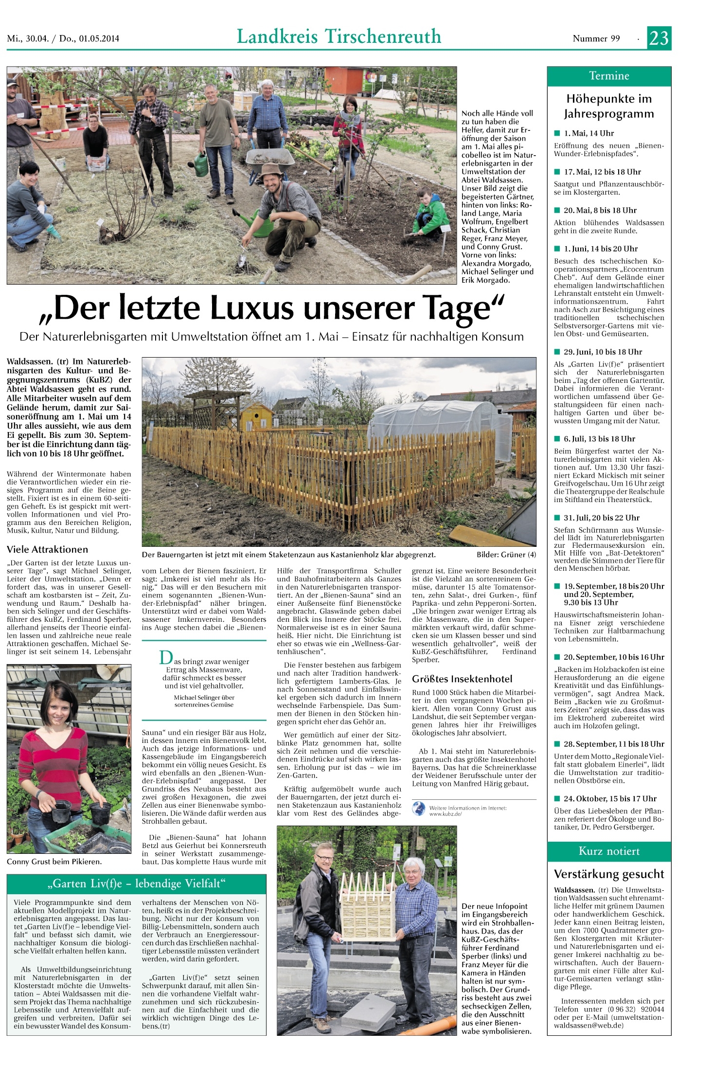 Bericht DnT zur Eröffnung des Naturerlebnisgartens in Waldsassen zur Saison 2014