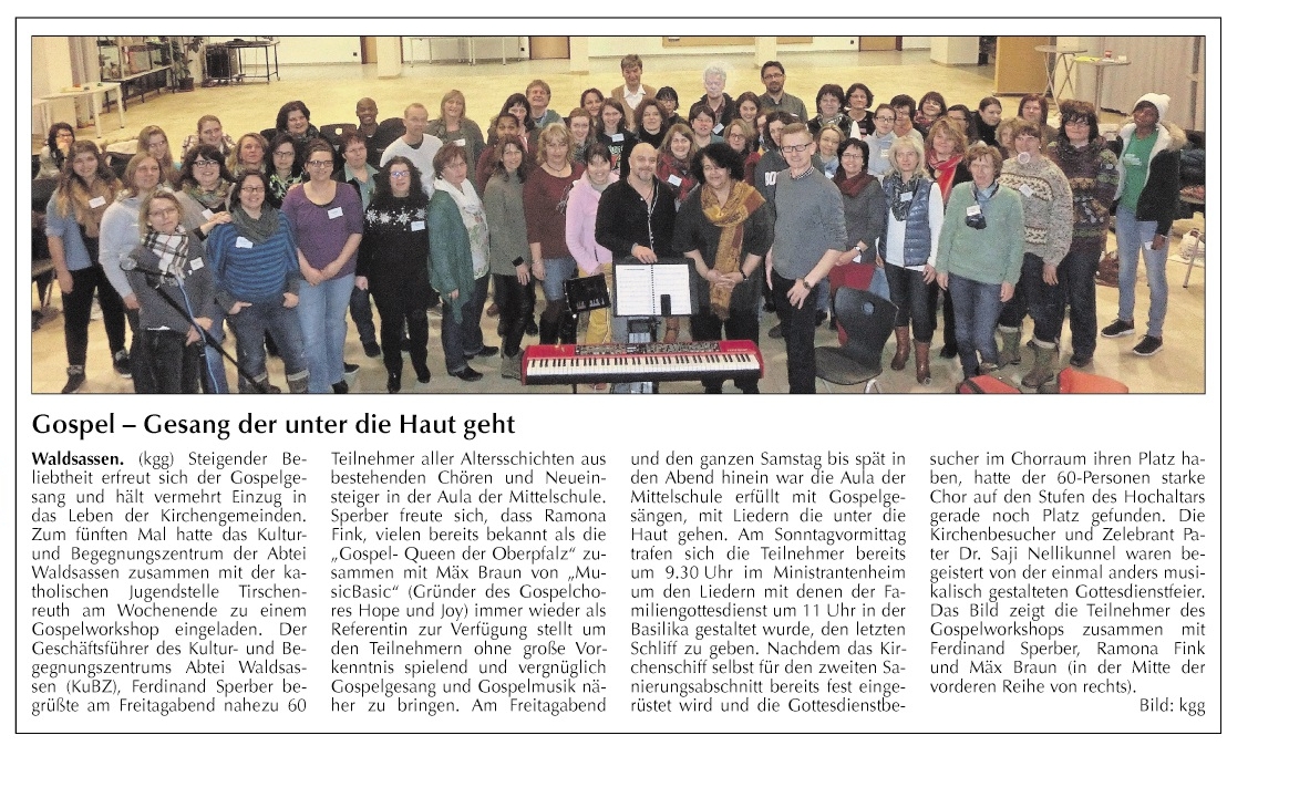 Pressebericht DnT Gospelworkshop KUBZ Waldsassen 2015