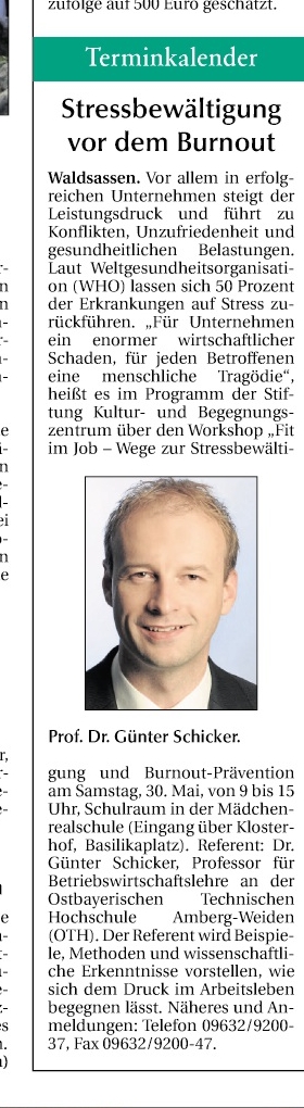 Fit im Job ein Pressehinweis mit Prof. Günter Schicker OTH Amberg-Weiden