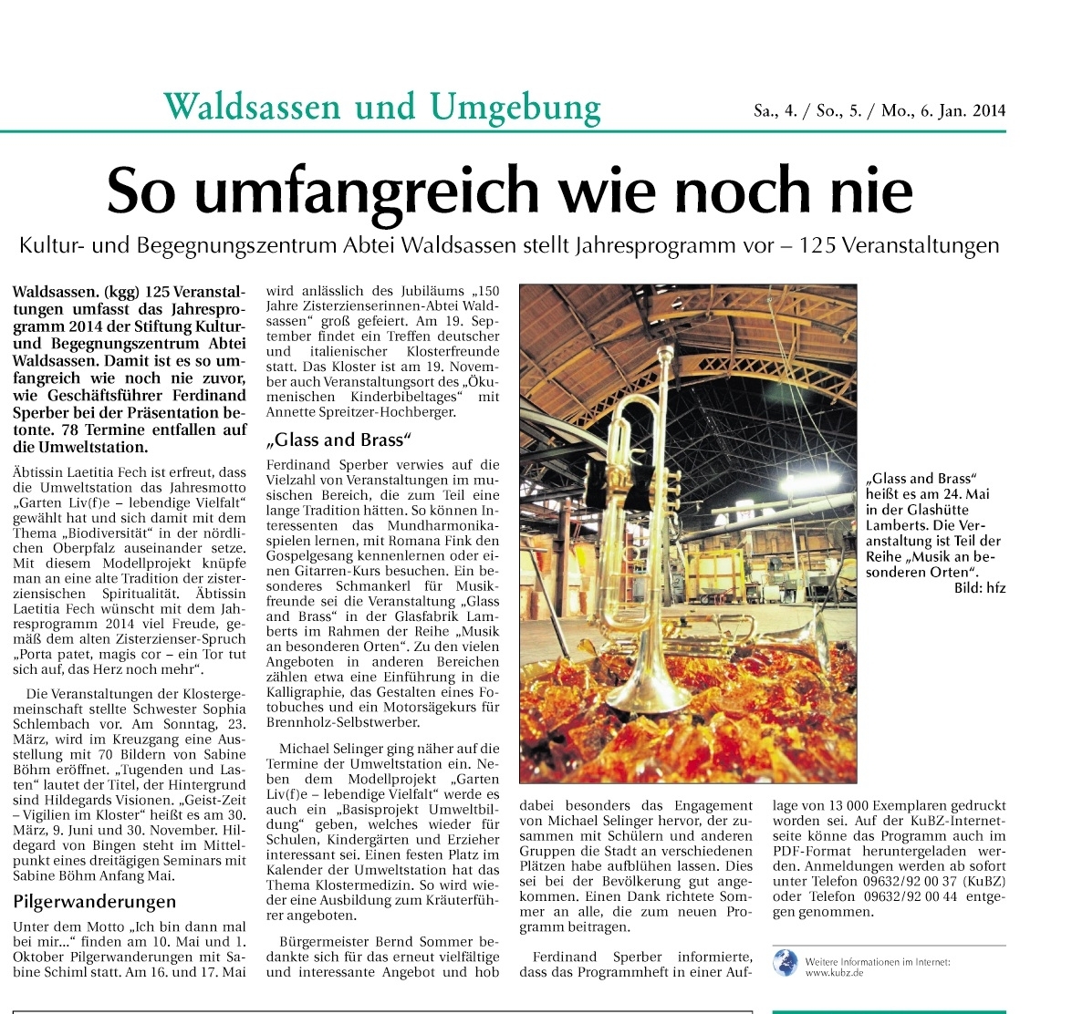 Der neue Tag Bericht Programmvorstellung des Kultur und Begegnungszentrum mit Umweltstation in Waldsassen  2014