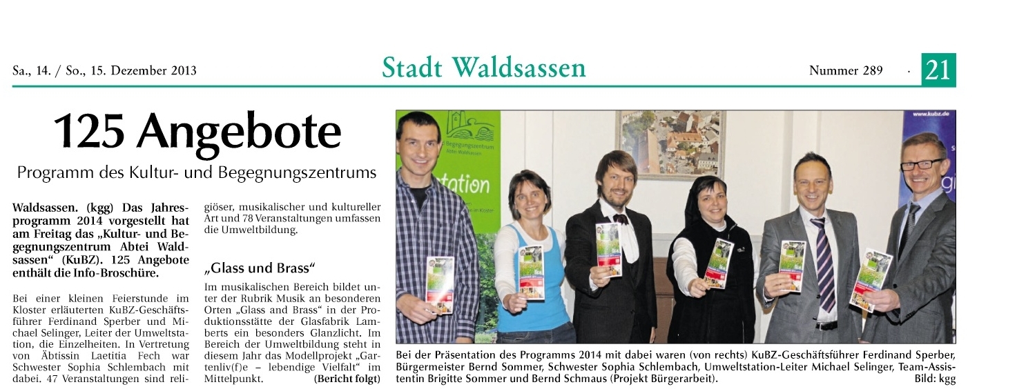 Der neue Tag Bericht Programmvorstellung 2014 des Kultur und Begegnungszentrum mit Umweltstation Waldsassen