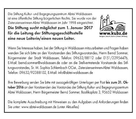Stellenanzeige für neuen Leiter der Geschäftsstelle KUBZ