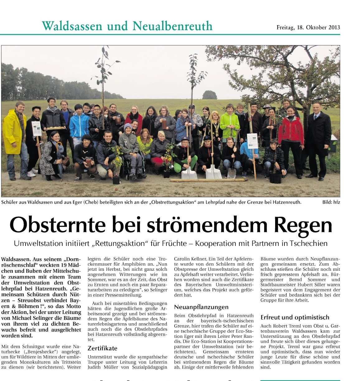Obsternte am Obstlehrpfad mit Mittelschule Waldsassen und CZ Partner aus Eger 2013