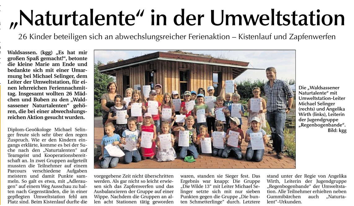 Pressebericht Naturtalent Waldsassen Ferienprogramm der Umweltstation 2013