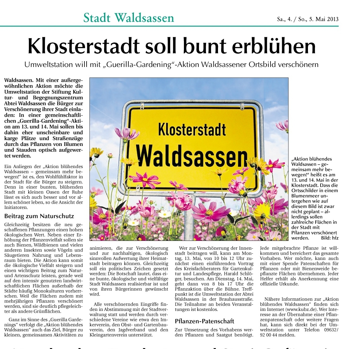 Pressebericht Guerilla Gardening Aktion der Umweltstation Blühendes Waldsassen 2013
