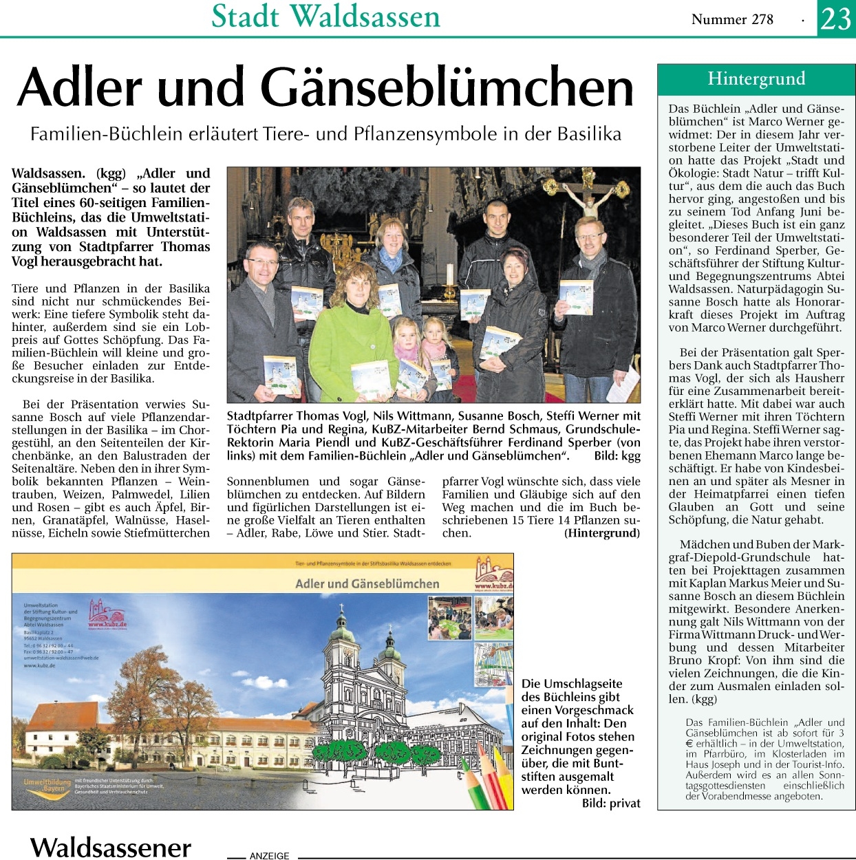 Pressebericht Buchvorstellung Adler und Gänseblümchen 2012